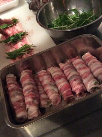 地有機水菜と梅肉の豚バラ巻き
