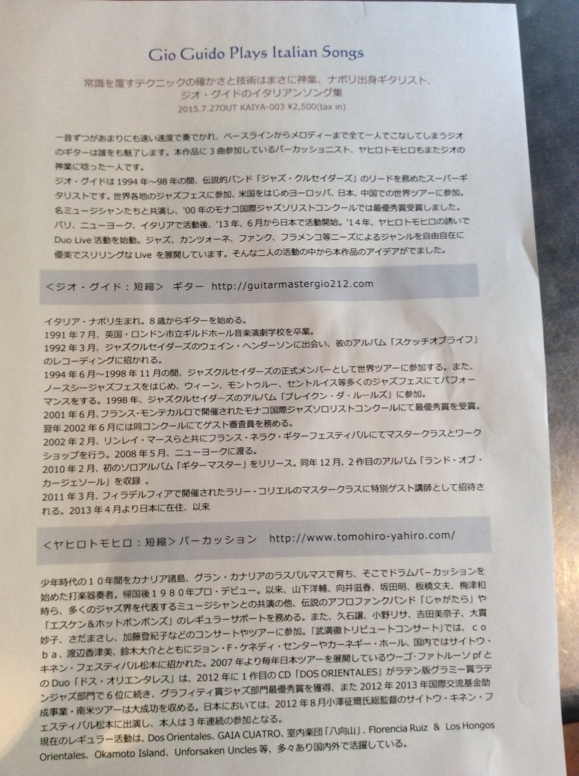 Music Charge ¥2000
