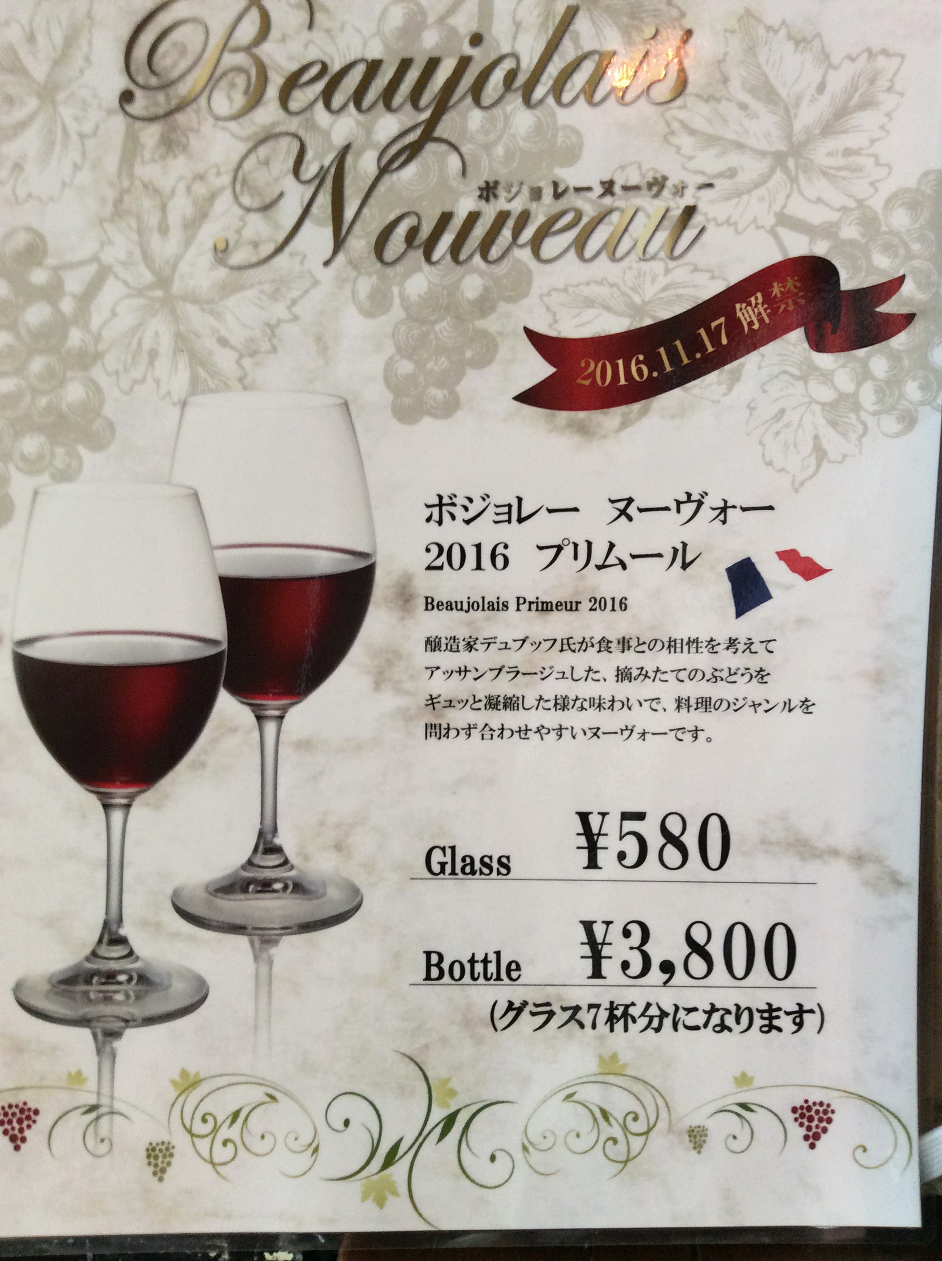 今年は他のボジョレーをお楽しみくださいませ。