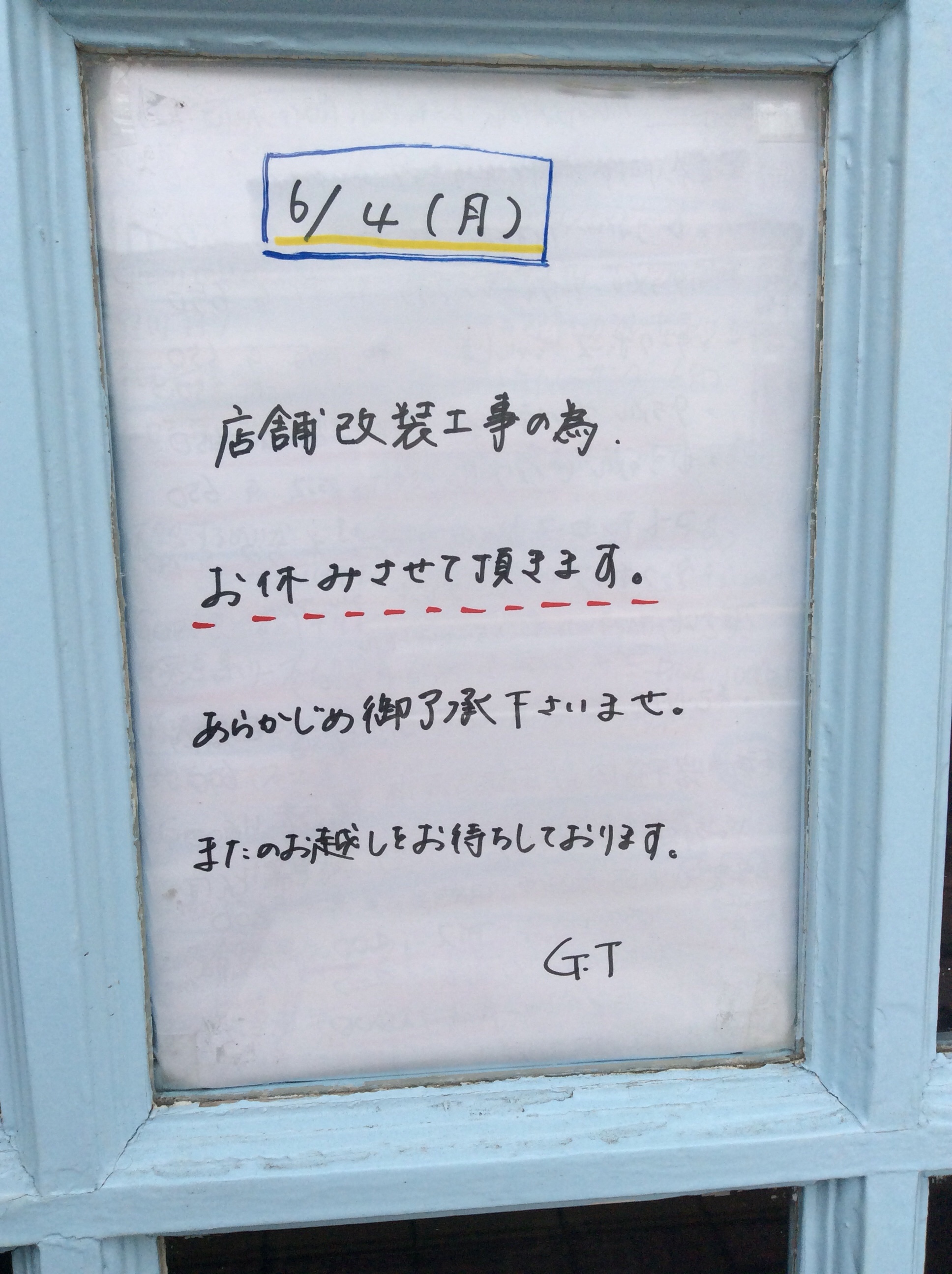 改装工事でお休みとなります。