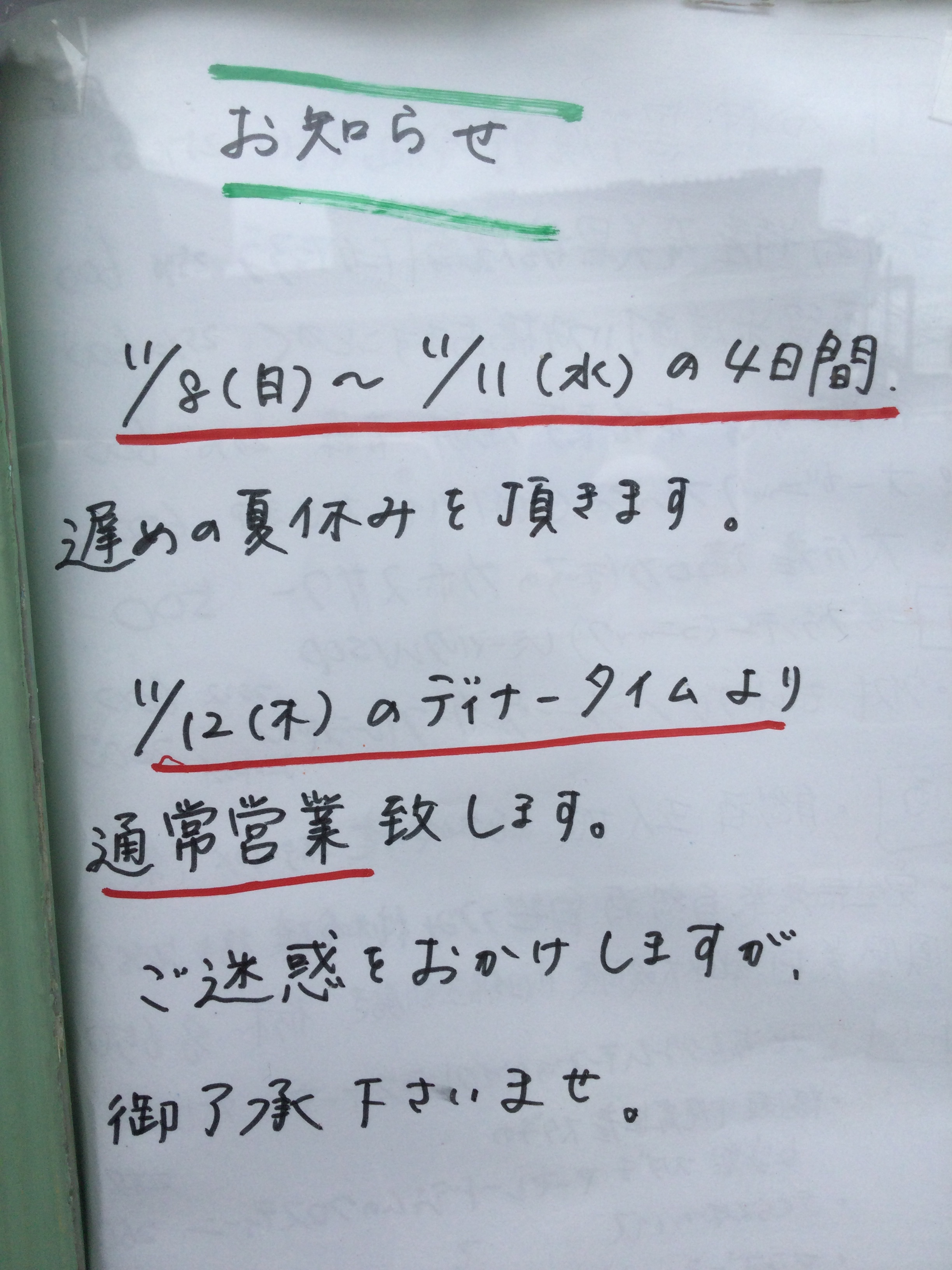 遅めの夏休みをいただきます。