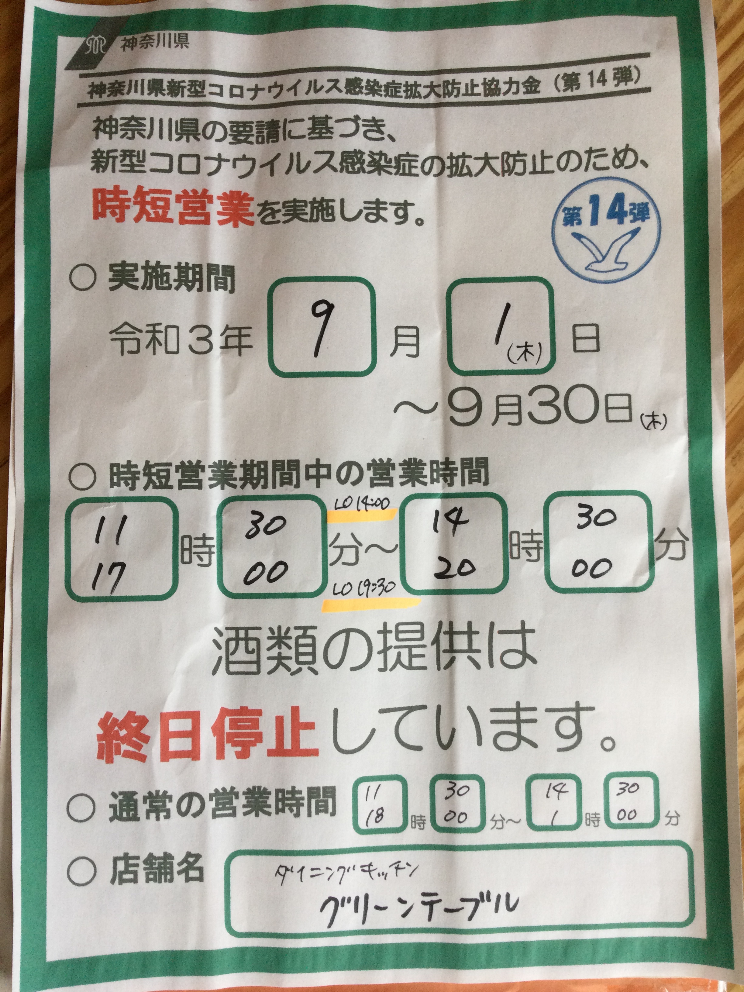 ノンアル時短延長となりました。