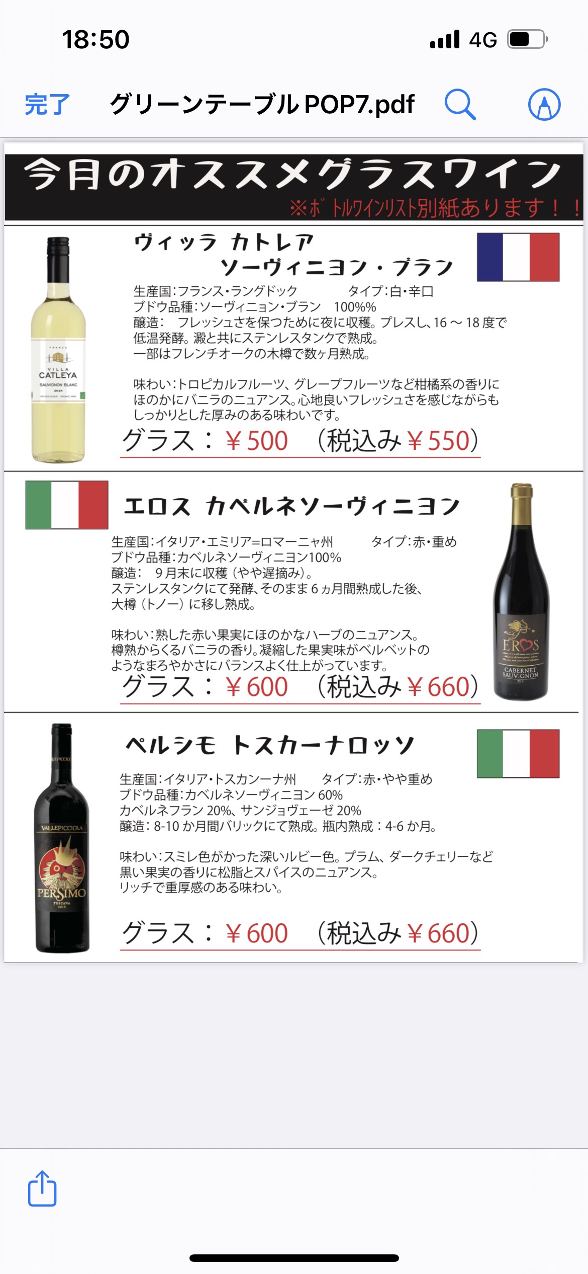 今月のグラスワインです。