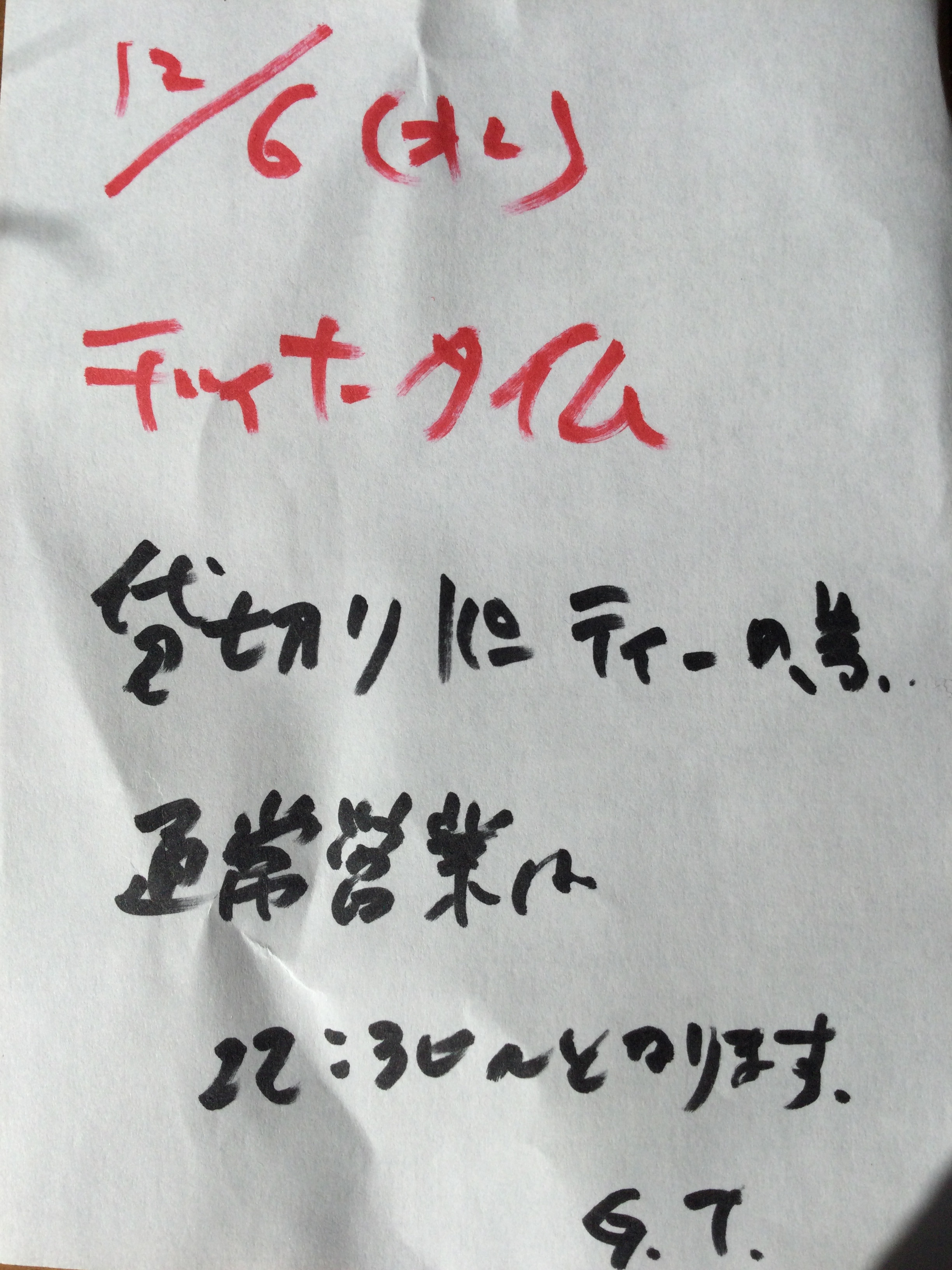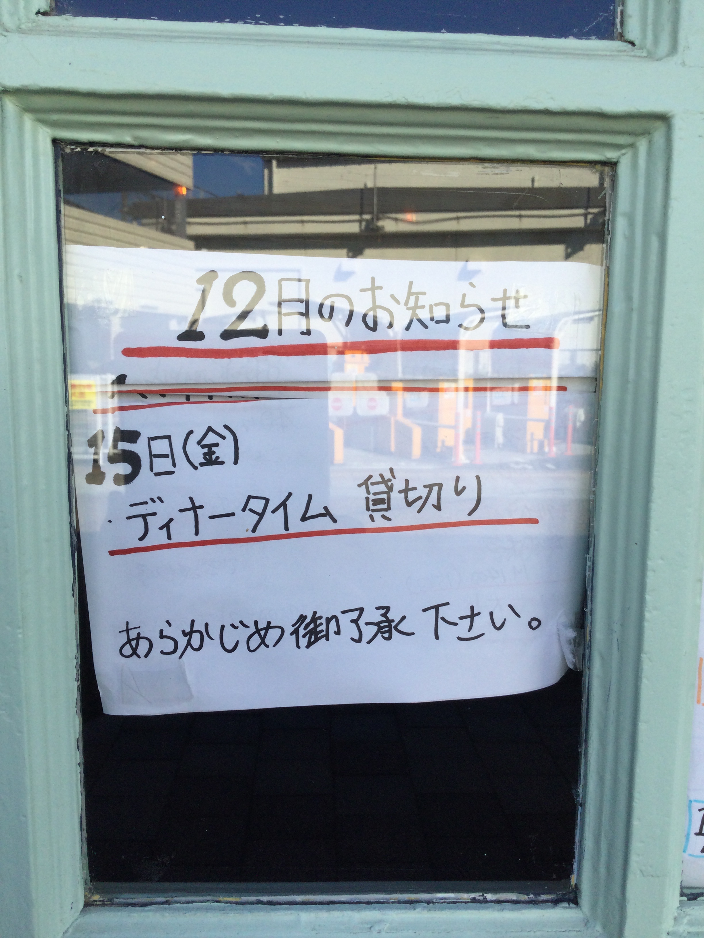 本日12/6(水)のディナータイムは