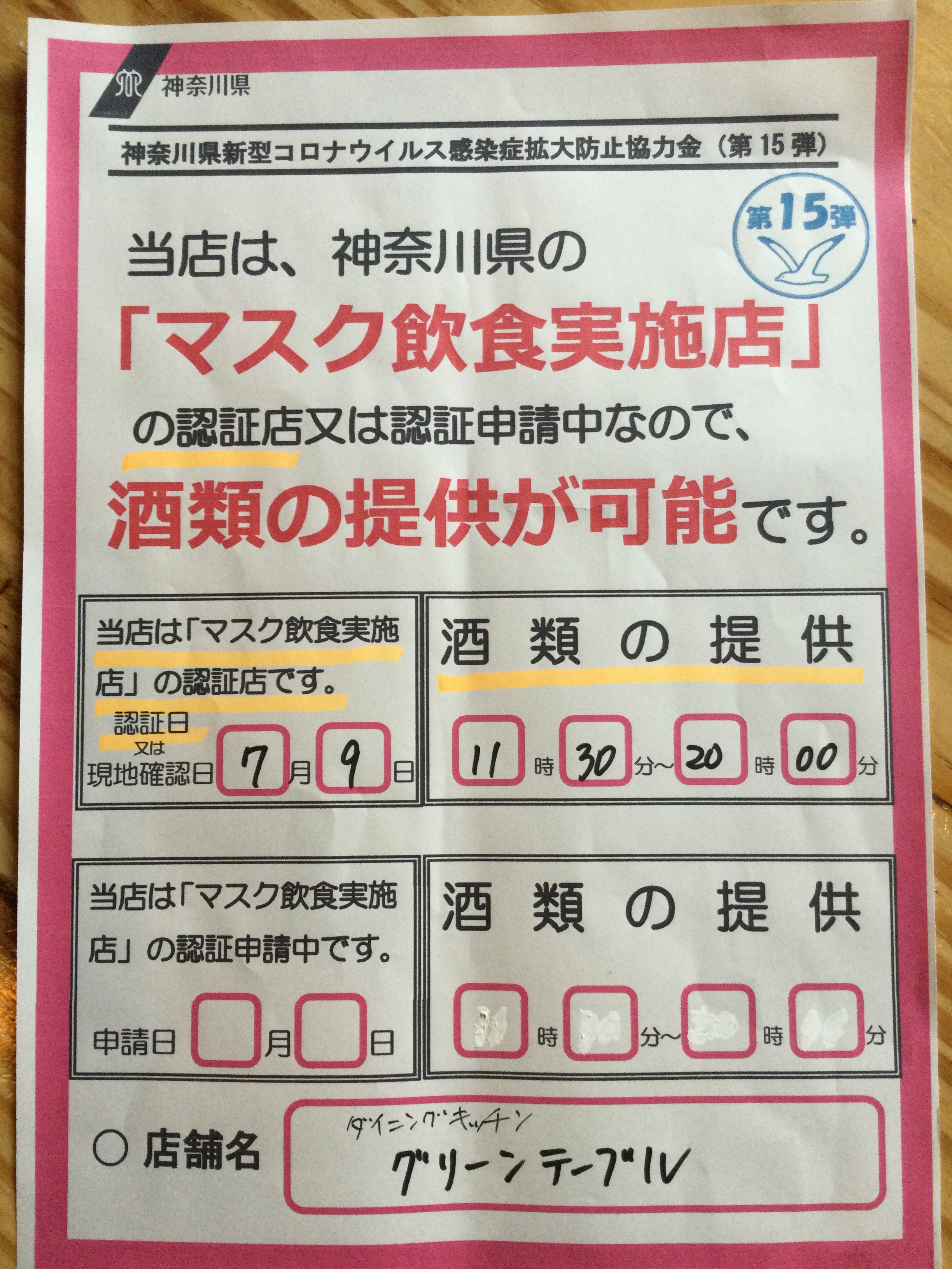 アルコールの提供出来ますよー